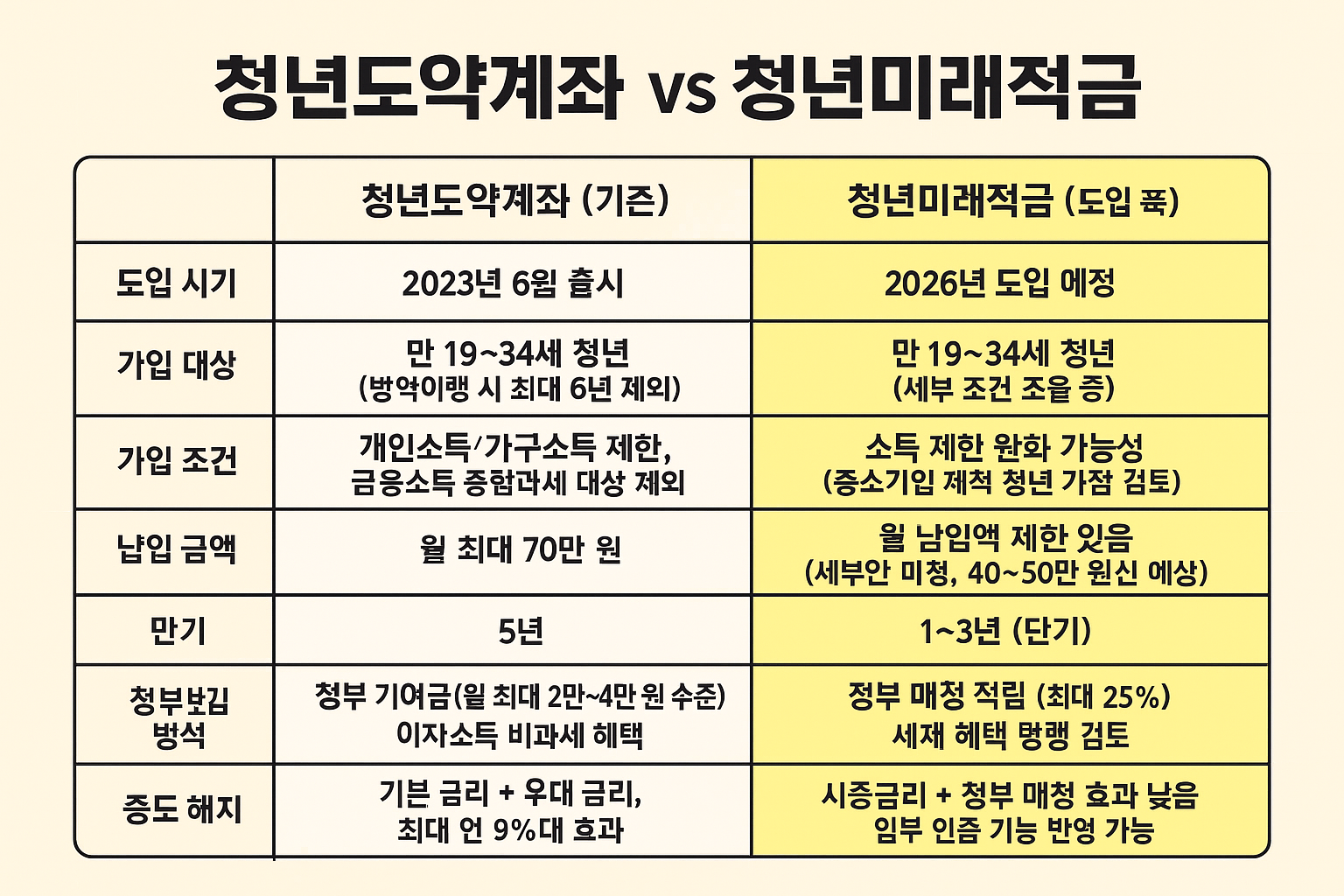 📊 청년도약계좌 vs. 청년미래적금 비교표